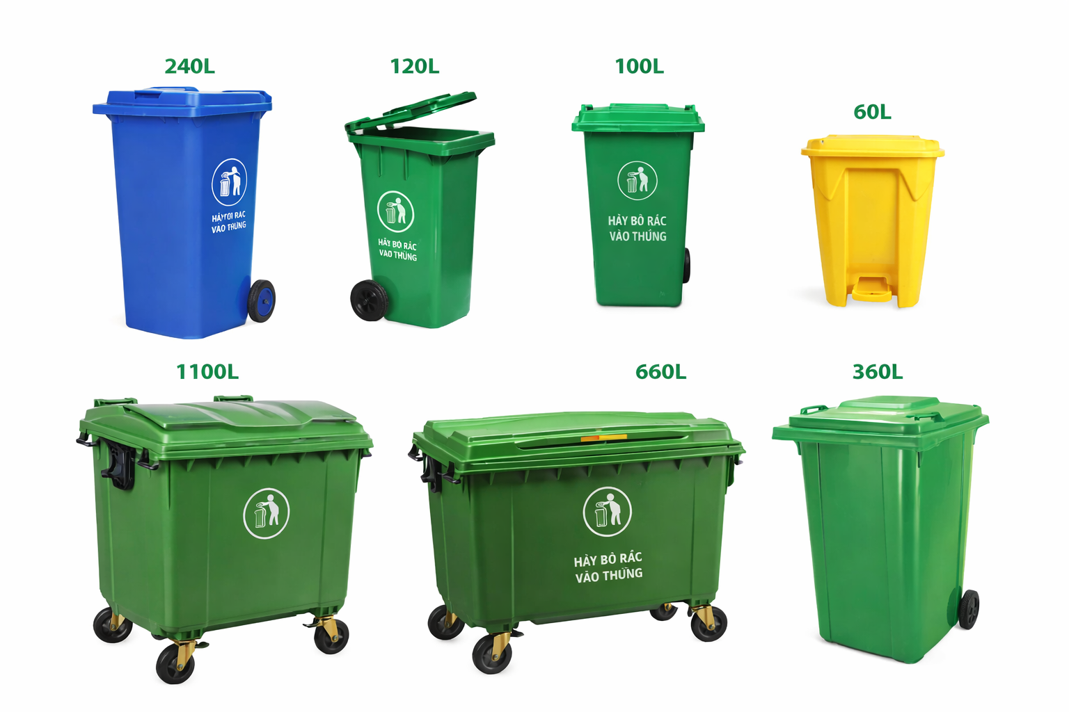 • Dung tích: 60L / 100L / 120L / 240L / 360L / 660L / 1100L